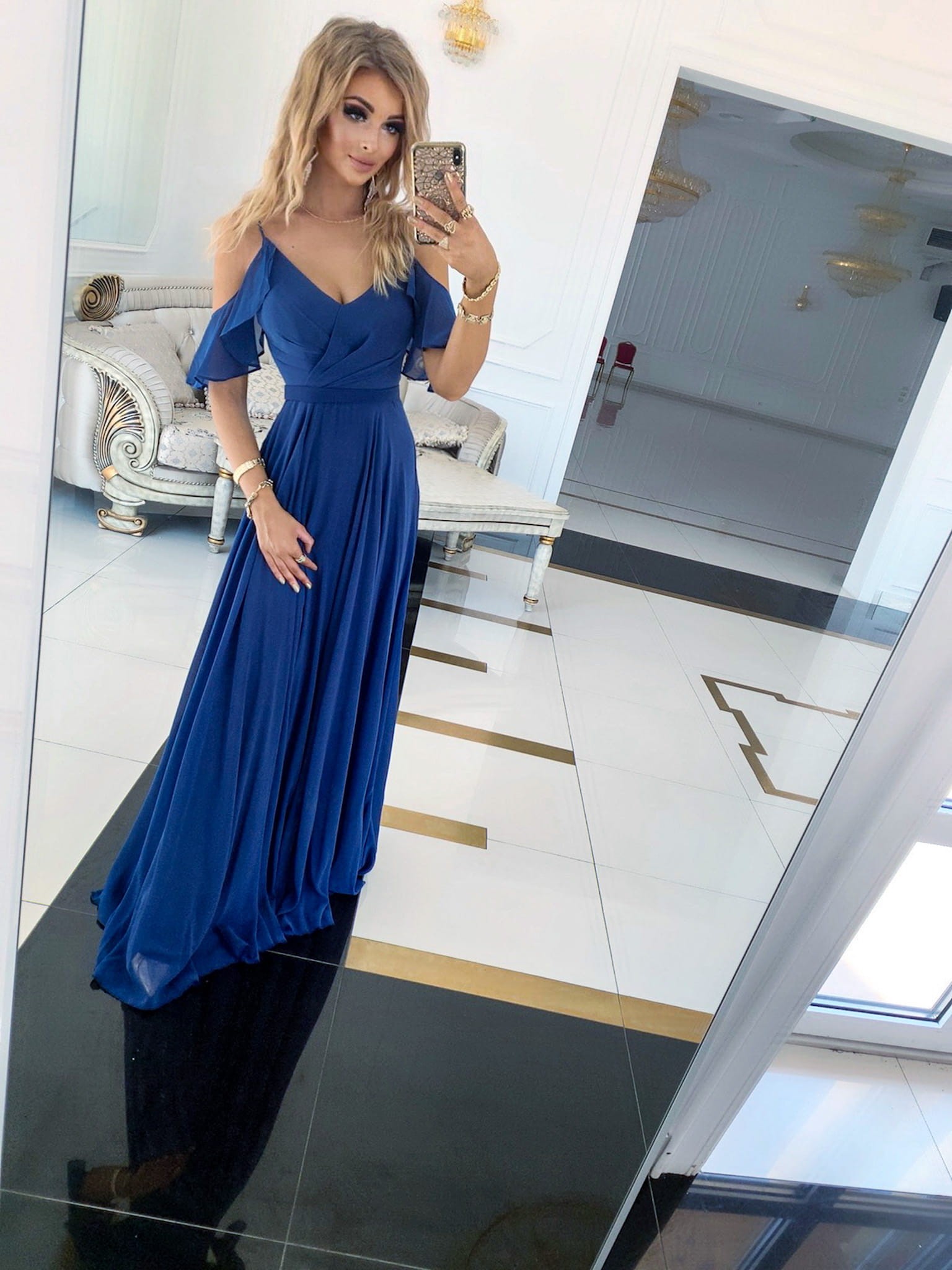 Długa suknia MOLLY zwiewna, elegancka i urocza chabrowa