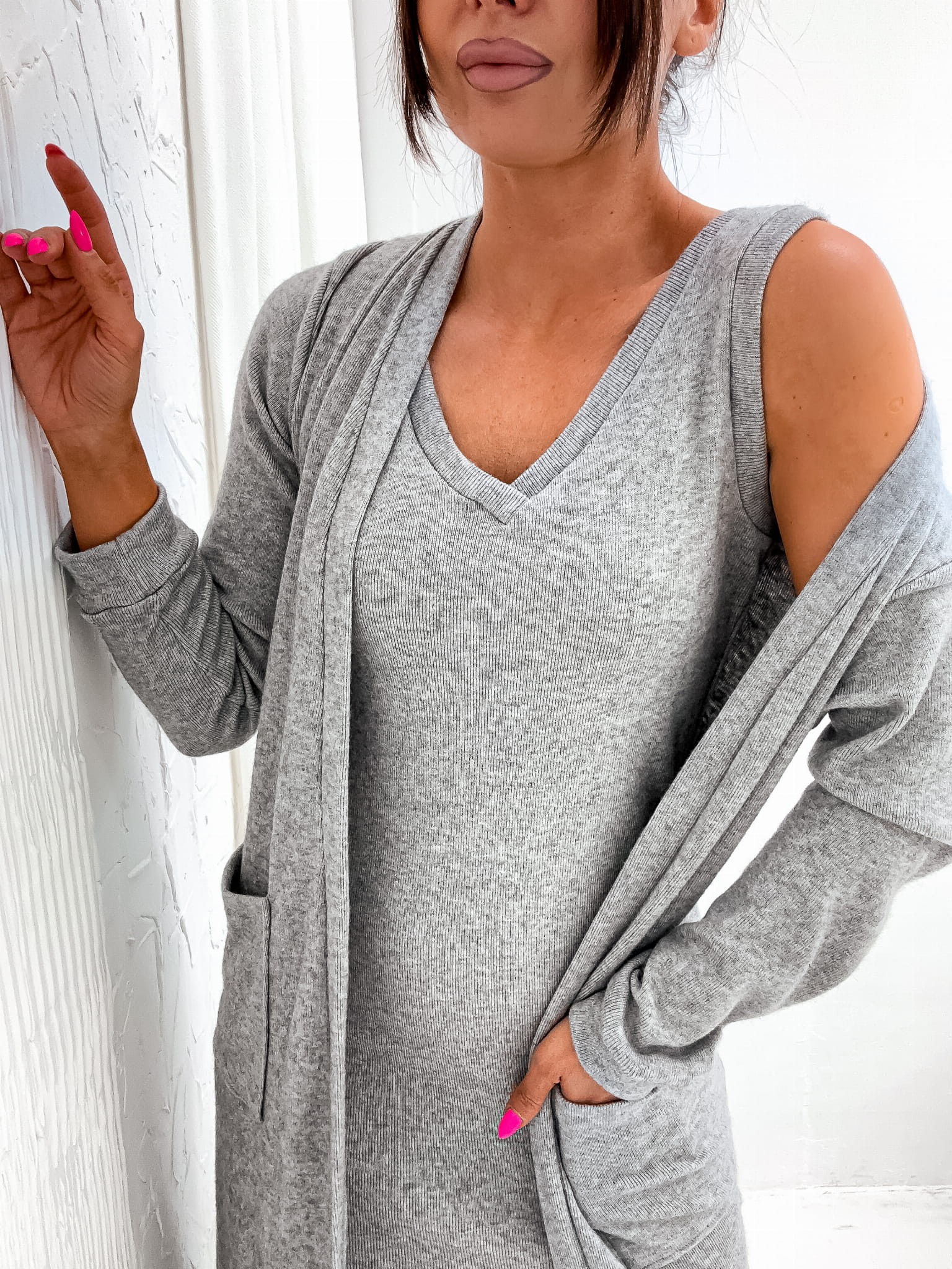 Sukienka sweterkowa plus narzutka, miękka przyjemna z kardiganem